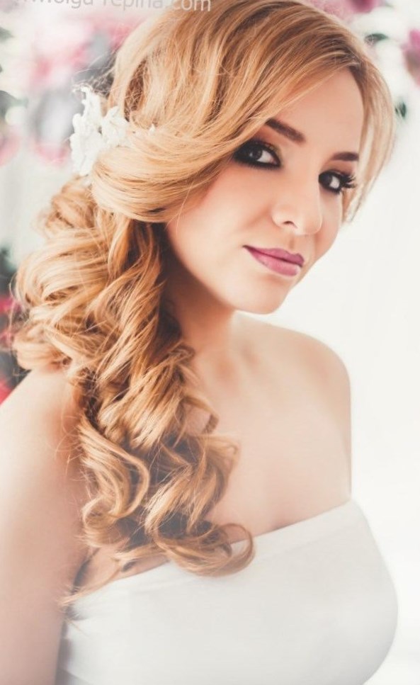 Така зачіска ідеально підійде для весільного плаття простого крою. Розпущене волосся, легкий макіяж і витончений, цнотливий образ скромної нареченої