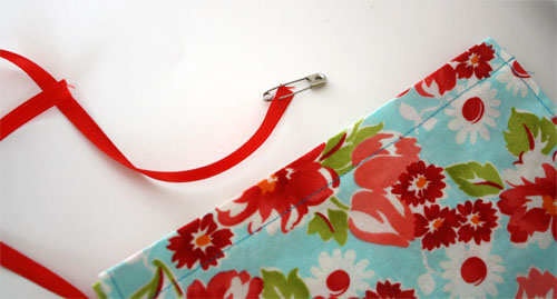 Прошийте верх сукні на кожній стороні на відстані 0,5 дюйма (1 см) від краю згину, створюючи кишеньку, через який потрібно буде протягнути стрічку.