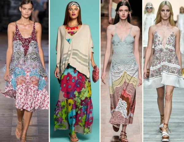 В особливому тренді цього літа – принти максі із зображенням великих фруктів, фужерів з коктейлями, урбаністичних елементів. Розпис тканини в техніці батік також буде актуальна.