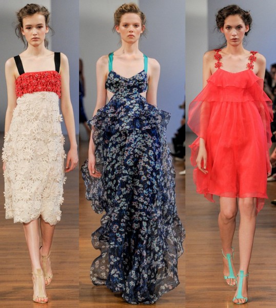 Справжньою вишенькою на торті моди цього літа можна назвати використання запаморочливих фігурних вирізів. Стільки різних варіантів! V-подібний, асиметричний, глибокий передній або бічній виріз – і всі вони з’являються на модних підмостках. Так що, дорогі дівчата, можна не боятися і серйозно взятися за експерименти з вирізом, спробувати різні варіанти, щоб, нарешті, знайти свій.