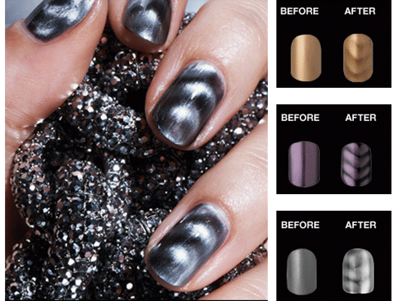 До складу такого лаку входить металевий порошок – ось те відміну від звичайних лаків. Сам порошок не створює ефектів, і спочатку здається, що в ньому немає нічого особливого.
