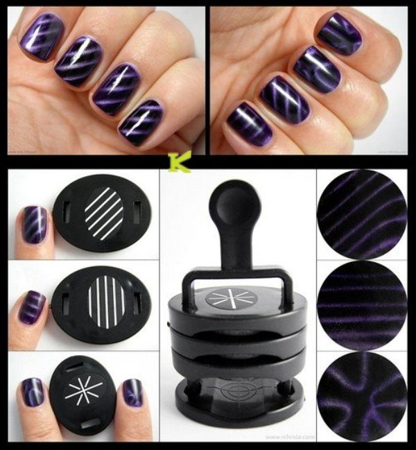 Ось такий незвичайний манікюр виходить в домашніх умовах за допомогою магнітного лаку для нігтів, фото: