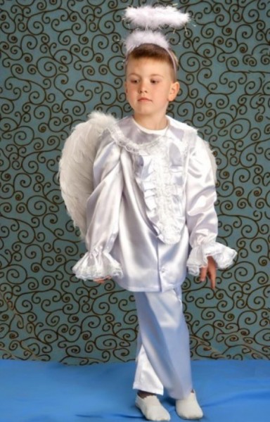 Деякі хлопчики захочуть собі костюм ангела. Але якщо вашій дитині дісталася така роль (до речі, традиційні ангели – саме херувими-хлопчики), ви зможете легко виготовити любий костюм. Вам знадобиться біла футболка, блискучий ремінець і німб, який ви зможете створити з дроту і мішури.