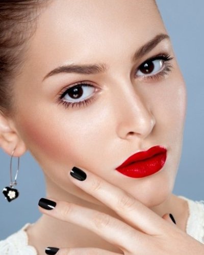 Червона помада – еталон краси, вимагає ідеального фону. Якщо білосніжна посмішка буде виблискувати, то наліт на зубах стане ще більш помітним жовтуватим і, вугри примітними, а не вищипані брови вкрай неохайним.