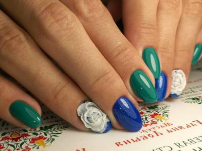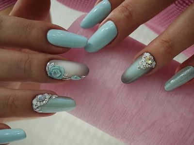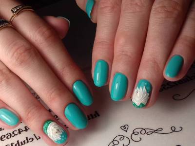 Бірюза ідеально підходить і для бази, і для самої ліпнини. На бляклих відтінках будуть вигідно виглядати насичені пелюстки і навпаки – на пастельній гамі прекрасна ліплення з участю бірюзових тонів. 3D і 4D гелі уподібнюють майстрів справжнім митцям, які представили на фото вражаючі по красі і відрізнити від живих квіткові композиції.