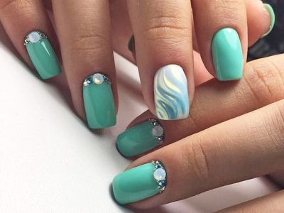 Розслабляючий своєю екзотичною прохолодою колір вважається ультрамодним в нейл-дизайні 2017 року. Свіжий, надихаючий, небесно-морський бірюзовий манікюр ось вже кілька сезонів підкидає все нові фото-ідеї, від яких неможливо відірватися.