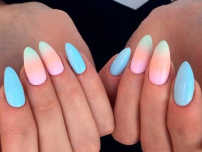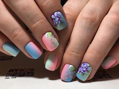 Модні тенденції 2017 року рекомендують робити перехід тонів на пісочку. Складнощів тут ніяких немає, оформіть звичайне омбре, а зверху посипте безбарвною акриловою пудрою. Результат буде вражаючим, особливо він актуальний для пляжного сезону. Таке ж правило працює для матового перекриття на градієнті.