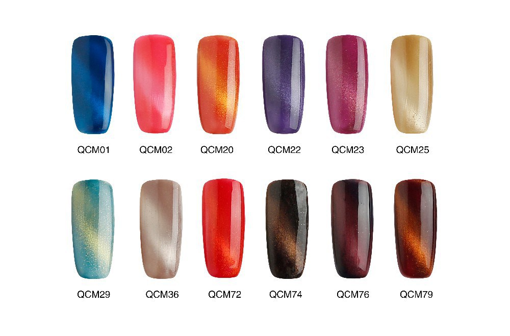 Гель-лак «Котяче око» являє собою дуже пластичну і щільну структуру, а також має багату кольорову палітру з насиченими пігментами. Це стійке покриття тримається до 20 днів.