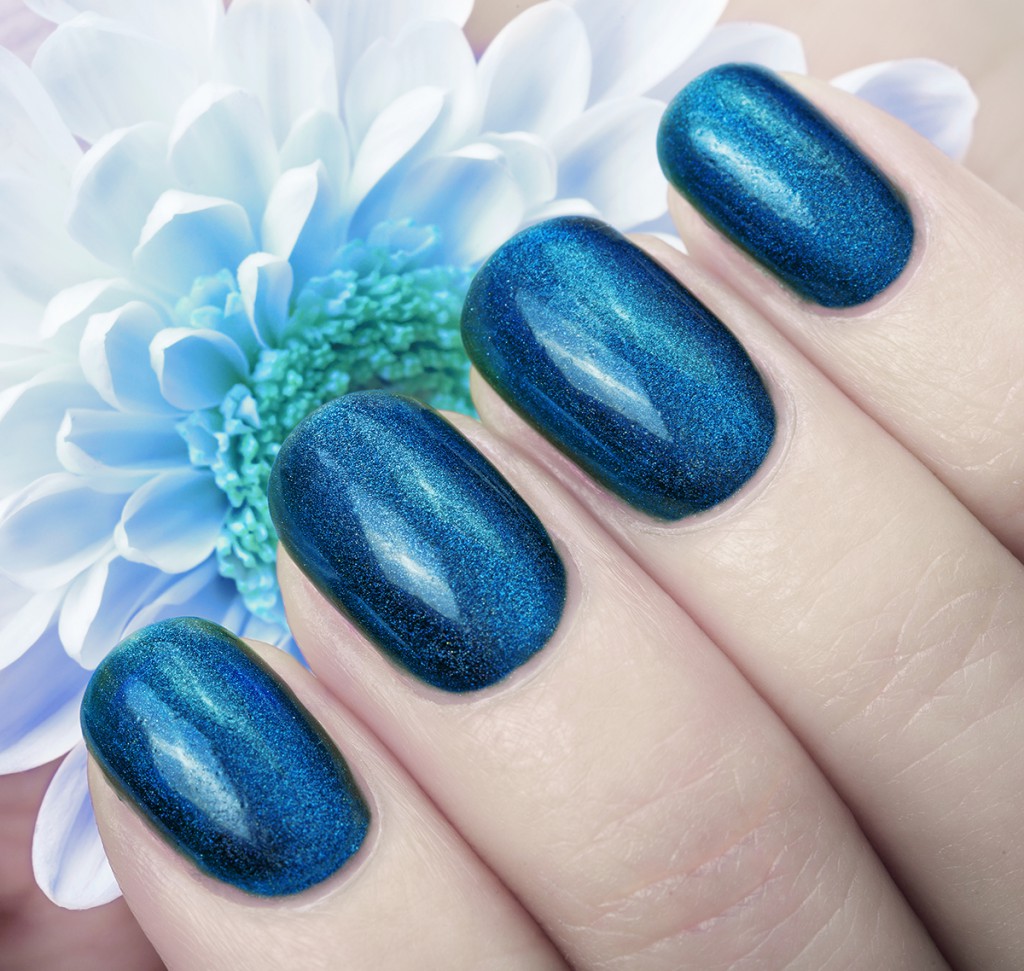 Коли на нігті потрапляє світло стає добре помітний об’ємний переливається блик, при повороті руки він зникає.