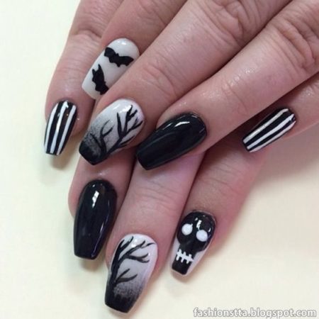 У 90-х роках з Європи та Америки до нас прийшов новий свято Хеллоуїн. Для нас це свято є одним з найбільш молодих, який ще не встиг обрости тими традиціями, які існують у Європейців. Однак не дивлячись на свою новизну, у багатьох нічних клубах країни в ніч на 1 листопада це свято відзначається з розмахом, проводяться костюмовані вечірки. Збираючись відзначати це свято, природно ніяк не можна забувати про стилізованому прикрашання нігтів, які повинні відповідати костюму.