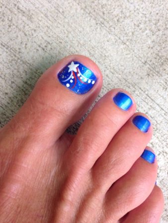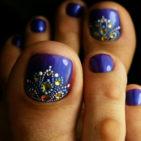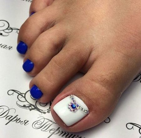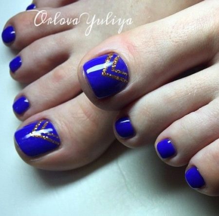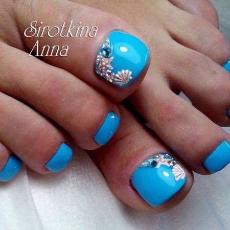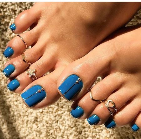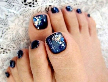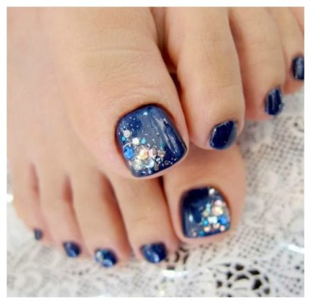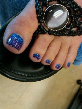 Сьогоднішній огляд ідей дизайну нігтів в синіх тонах. В огляді представлені ідеї педикюру з візерунками, синій дизайн нігтів з блискітками, педикюр омбре, квіти на нігтях ніг, намистинки і стрази в поєднанні з синім лаком. Педикюр з дизайном Бите скло, В самий розпал літнього сезону, ніжки повинні бути бездоганними, дизайн нігтів добре поєднуватися з відкритою взуттям, а лак повинен бути стійким, таким як наприклад Гель лак або Шелак.