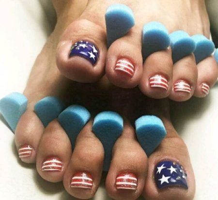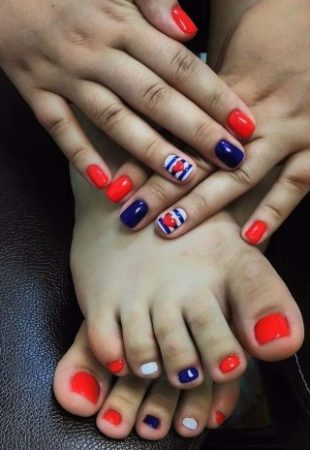 Червоно синій дизайн нігтів рук і ніг