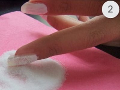- Тримаючи пальчик з непросохшим пігментом над баночкою з піском, щедро зачерпніть лопаткою пушера або віялової пензликом і рясно осыпьте ніготь кілька разів. Після надсилайте на просушку.