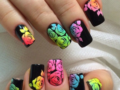 Улюблені квіти малювати пензлем, а потім присипте пісочком. Виглядає все це неймовірно вишукано. Як серцевини квітки приліпіть блискучий стразики, і нейл-арт стане ще привабливі. Найбільш вдалі кольори – білий, червоний, рожевий, лимонний.