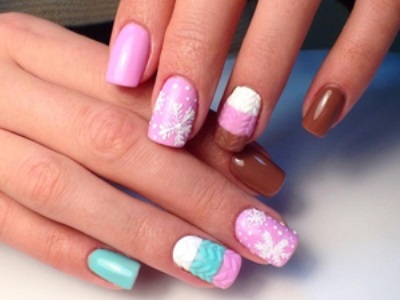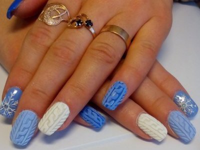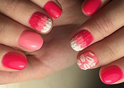 Ось вже не один зимовий сезон модниці традиційно одягають на зиму нігтики в «светри». Все, що потрібно, – намалювати орнамент, схожий на в’язку, тонким пензлем, а потім присипати піском. Вишукана в’язка ідеальна для холодного часу року. Затишок і стиль в одному флаконі!