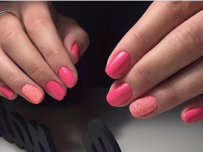 Зате, якщо все зроблено правильно, то мягонькие на вигляд і приємно мерехтливі нігтики стануть прикрасою будь-якого образу! І оксамитовий пісок не зобов’язаний сидіти на всіх нігтях, можна виділити лише кілька, як на фото, або зробити їх різнобарвними. Словом, є, де розвернутися фантазії.
