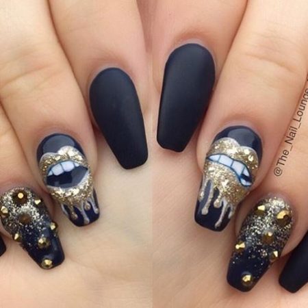 Сьогодні в огляді представлені фото манікюру з золотим лаком, блискітками, представлені ідеї дизайну нігтів чорний з золотом, синій манікюр з золотом, гарний дизайн нігтів з золотом і квітами, манікюр із золотим лаком у вигляді плям.