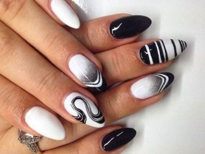 Чорний низ, білий верх, маленьке чорне плаття і нитка білого перлів – багато років таке поєднання в моді вважається синонімом смаку. Не відстає і нейл-дизайн, чорно-білий манікюр робиться в основному на короткі нігті і фото доводять, що елегантність – це простота.