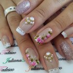 • Нюдовый манікюр, витриманий в одному тоні слід доповнити ніжними бутонами весняних квітів.