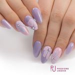 • Світлі відтінки бузкового лаку на нігтях гармонують з білими пролісками.