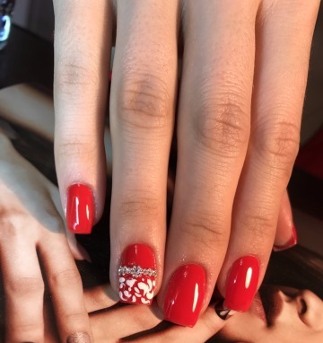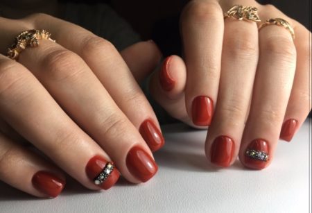 червоний манікюр зі стразами