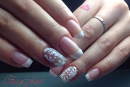 Французький манікюр з білими візерунками