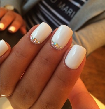 Ідея білого манікюру зі стразами фото