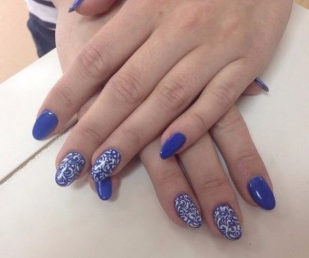 фото синій манікюр з візерунками