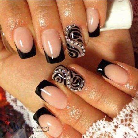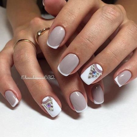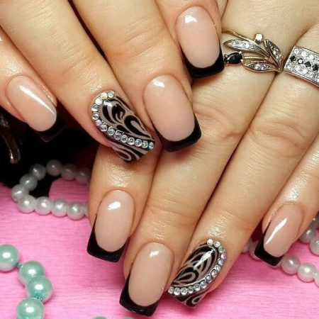 Це безперечно класична схема. Вона йде всім і завжди доречна. Навіть знатні особи, яким за регламентом не годиться носити яскравий або помітний манікюр, часто звертаються саме до френчу. Якщо ви хочете різноманітності, то можете спробувати один з нестандартних видів. Приміром, замінити класичні тілесні і білі кольори на модні відтінки, вибрати елегантний чорний або зовсім кольорову смугу на кінчику нігтя… стразами, намистинами, плівкою або будь-яким іншим елементом декору.