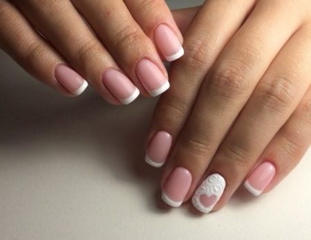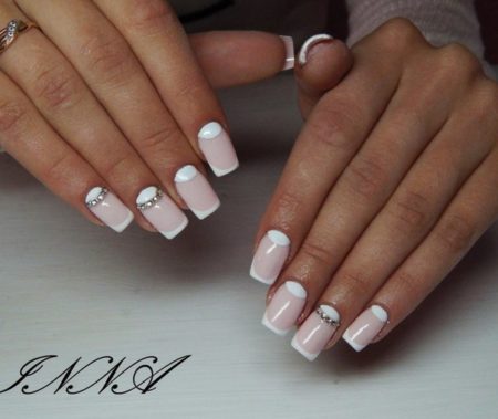 Французький манікюр є основою для багатьох варіантів весільного дизайну. Нареченої обожнюють цю схему, так як нігті виглядають неймовірно ніжними і акуратними.