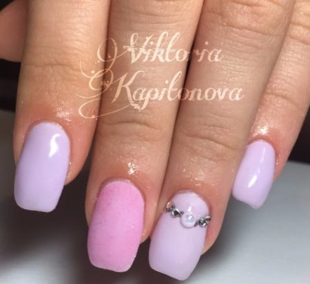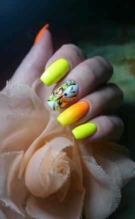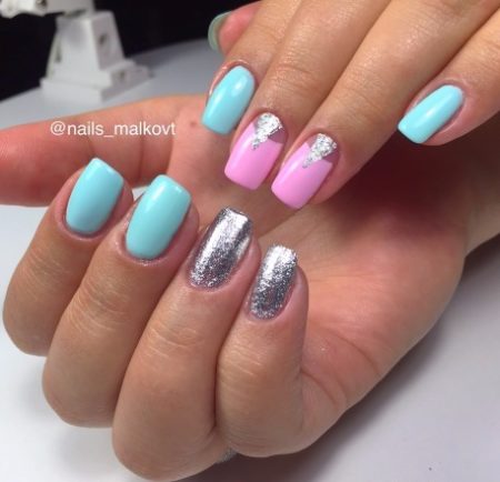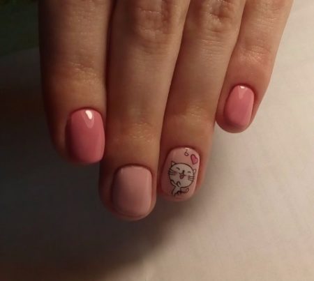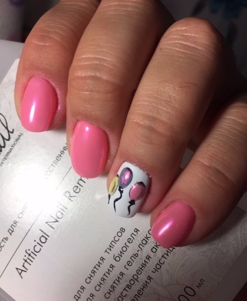 Для коротких нігтів можна підібрати і невеликий але веселий малюнок у поєднанні з пастельними кольорами лаків