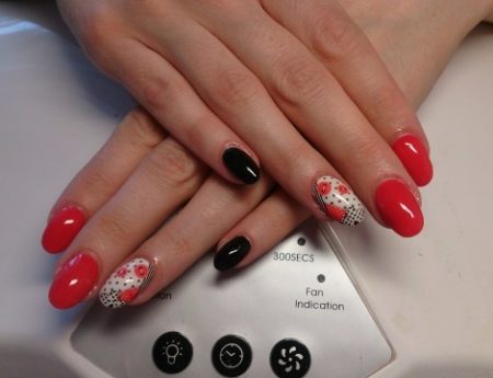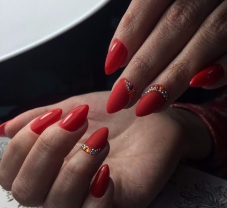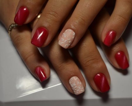 Ідеї червоного дизайну нігтів і Фен-Шуй, коли один ніготь покривається лаком іншого кольору