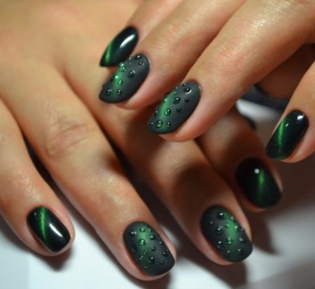 Магнітний манікюр. За рахунок зміни положення частинок металу в лаку, буде виглядати під різним кутом по різному, що надає йому особливу неповторність