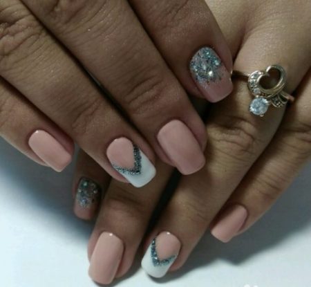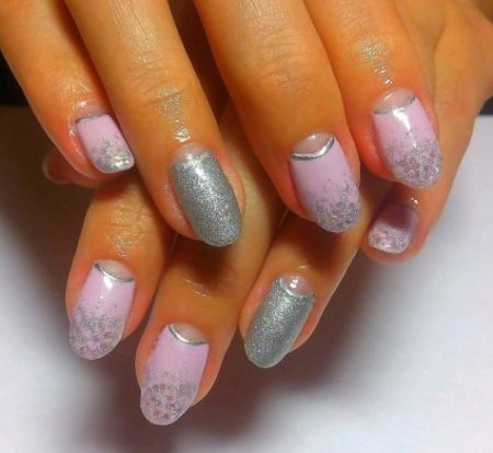 Дизайн нігтів Френч і трохи блиску — відмінне рішення для манікюру. Такі нігті будуть виглядати актуально як на роботі, так і на вечірньому заході