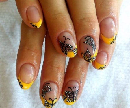 Якщо непомітний дизайн це не для Вас, то метелики і жовтий френч буде кращим рішенням для Голого манікюру