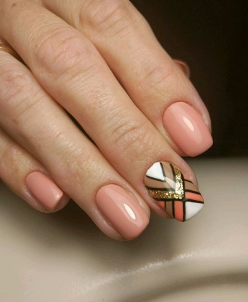Прості не складні візерунки на коротких нігтях виглядають дуже привабливо, а гель лак захищає нігті від пошкоджень і надає блиск