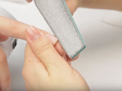 4. Верхній шар нігтя шліфується. Робиться це высокообразивной пилкою, приблизно 180 од. При спилюванні руху відбуваються паралельно нігтя.