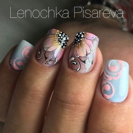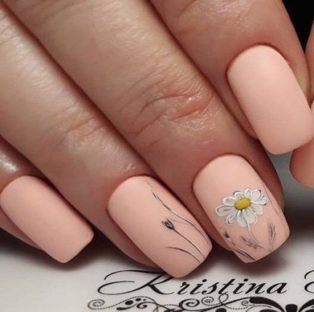 матовий дизайн нігтів з квітами