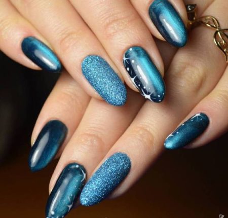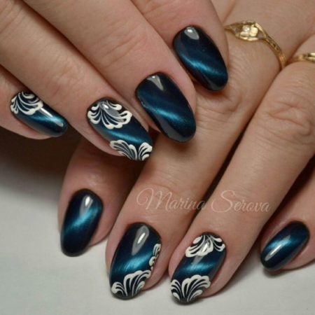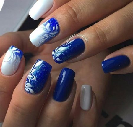 Біло синій манікюр