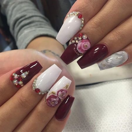 червоний манікюр з квітами