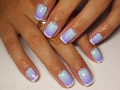 Такий модний у цьому сезоні градієнтний манікюр або омбре буде також доречний для коротких нігтів. Важливою умовою є нанесення більш темного відтінку біля основи пластини, а світлого – у краю. Звичайно, можна і навпаки, але це не додасть візуальних міліметрів вашої довжині. Одержуваний плавний перехід відмінно виглядає на нігтях, а техніка його створення не викликає труднощів.