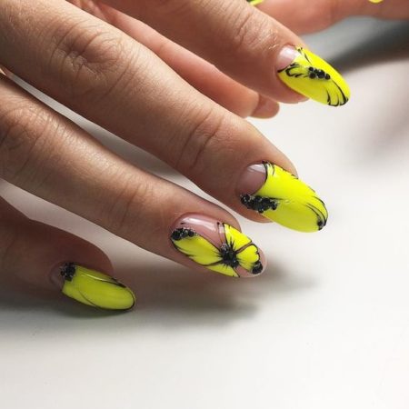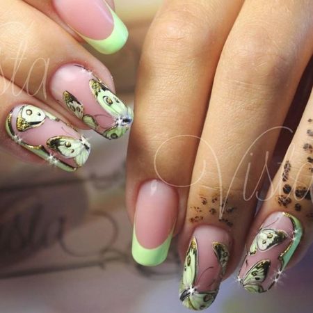 99-й огляд ідей манікюру. Осінні ідеї манікюру 2017 року. Красивий манікюр з метеликами, дизайн нігтів френч з квітами, френч з метеликами, ідеї манікюру жовтим лаком, фото дизайну нігтів зі стразами.