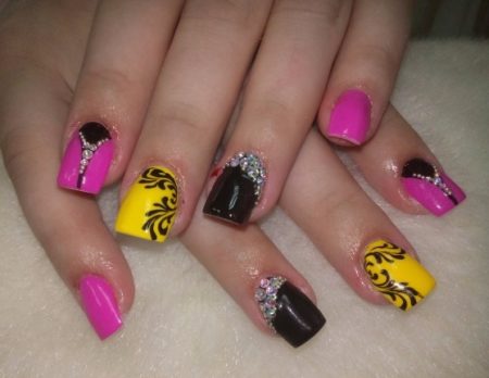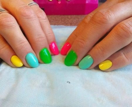 Яскраві тони лаків у красивому дизайні нігтів в цій частині сьогоднішнього огляду фото манікюру…