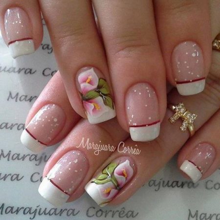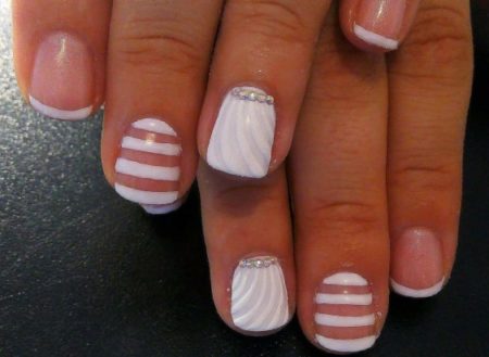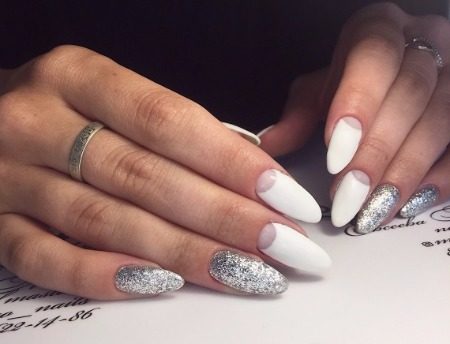 Красиві фотографії нігтів з використанням білого лаку. Білий з блискітками, малюнки білим лаком і Френч, білий манікюр з метеликами….
