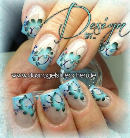 Підбірка красивих фото з синіми відтінками лаків. Синьо білий дизайн, Градієнтний манікюр, дизайн нігтів з малюнками квітів в синіх тонах…..