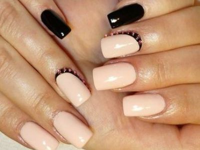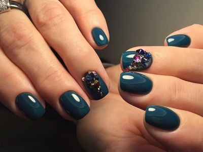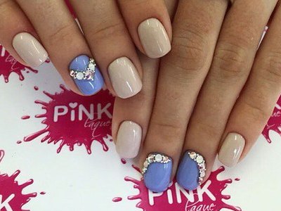 Колірна палітра в цьому випадку безмежна, стрази можна брати всіх кольорів і перемішувати їх, камінчики можуть контрастувати з базою або красуватися на ніжних нюдовых тонах – в будь-якому випадку короткі нігті виявляться у виграші.