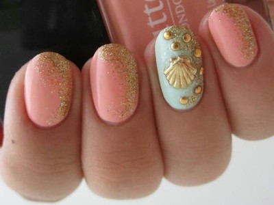 Альтернатива гель-фарби і художнім умінь. Якщо ви хочете легкий і, саме головне, швидкий «відпускної» манікюр, то можете елементарно наклеїти готові пластикові черепашки. Вони добре поєднуються з блискітками, небесними і піщаними відтінками лаків.