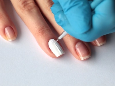 - Покрийте «місце приземлення» черепашки щільними шарами білого гель-лаку.