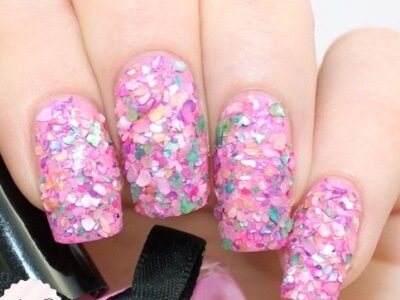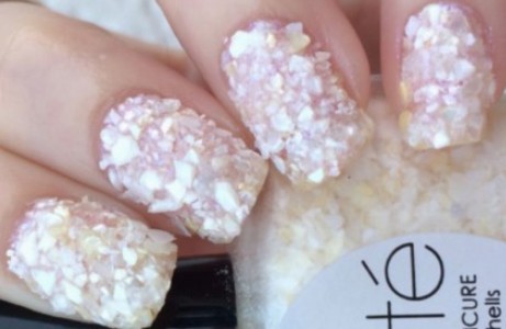 Екстравагантний дизайн набирає популярність і вже здобув чимало прихильників. Тут не знадобиться нічого малювати, а потрібен спеціальний декор, схожий на подрібнені останки раковини і одночасно на шматочки слюди. Його надійно топлять в базі, сушать і густо перекривають топом.