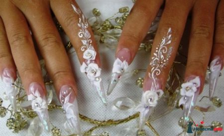 Об’ємні квіти — варіант для особливого випадку. Такий дизайн нігтів нареченої вибирають для весілля, молоді дівчата — на випускний, а дорослі жінки — для найурочистіших моментів в житті. Недолік манікюру з квітами (об’ємними) — його недовговічність. З такими нігтями потрібно бути акуратніше, так як будь-яке незручне рух може пошкодити декор.